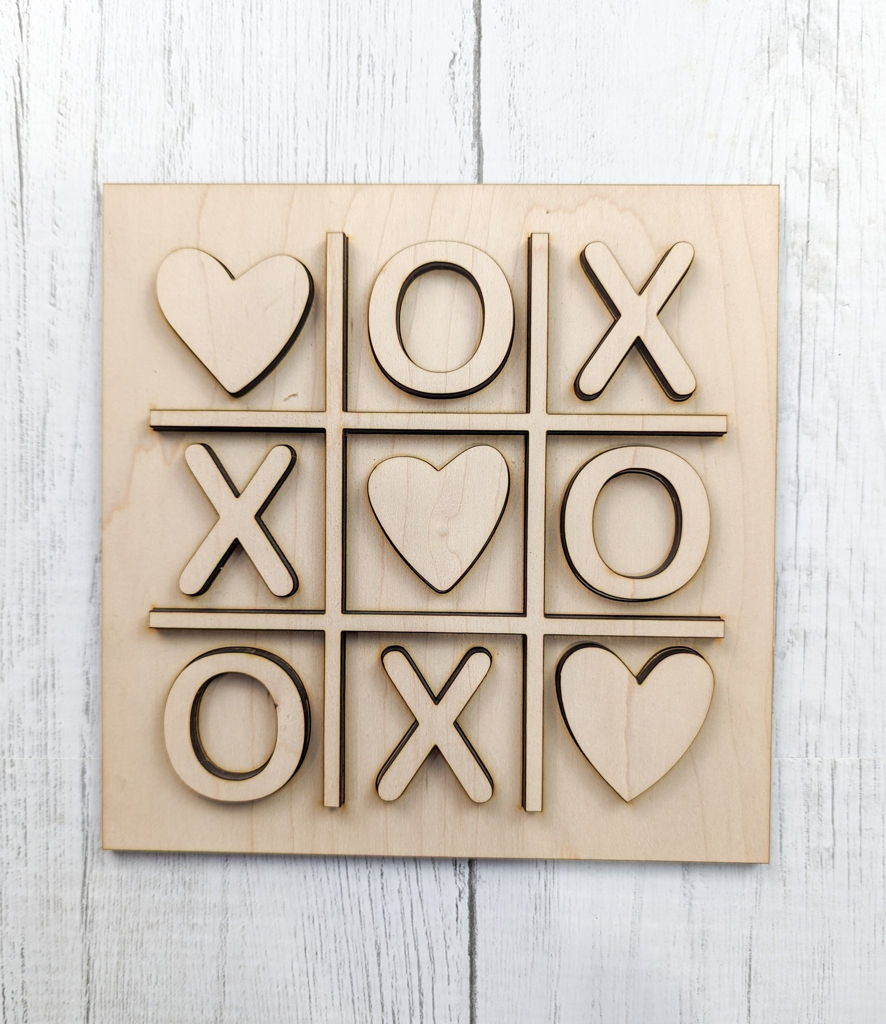 This Valentine's tic tac toe sign is 7x7 in and is made from two layers of 1/4 in maple wood. This beautiful sign will brighten any room in your home! You can get this sign finished as pictured or get a craft kit which includes the sign base with engraved outlines for you to line up the wooden pieces perfectly! If you get a craft kit please email us a picture at geoanddan1@gmail.com so we can feature it on our Instagram! We love seeing how you finish your kit!