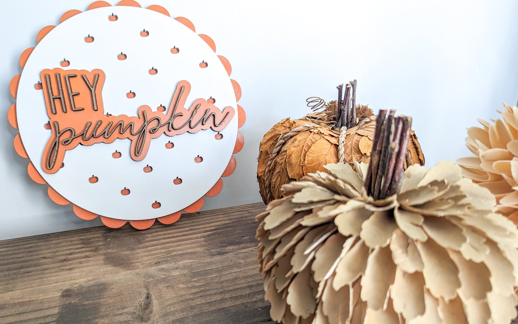 This adorable Hey Pumpkin sign is made of 1/4 in maple wood and is 10 x 10 in. This sign is 4 layers and comes finished as pictured or as an unfinished craft kit that you can finish yourself. We do have a craft Youtube channel where we post videos with tutorials of all of our products, so if you are interested in watching please go to https://www.youtube.com/channel/UCgLDotKxYOv4aB3PfQk6u5Q. If you get the craft kit please send us a picture of your finished sign at our email geoanddan1@gmail.com! We'd love to feature you on our Instagram @geoanddan!