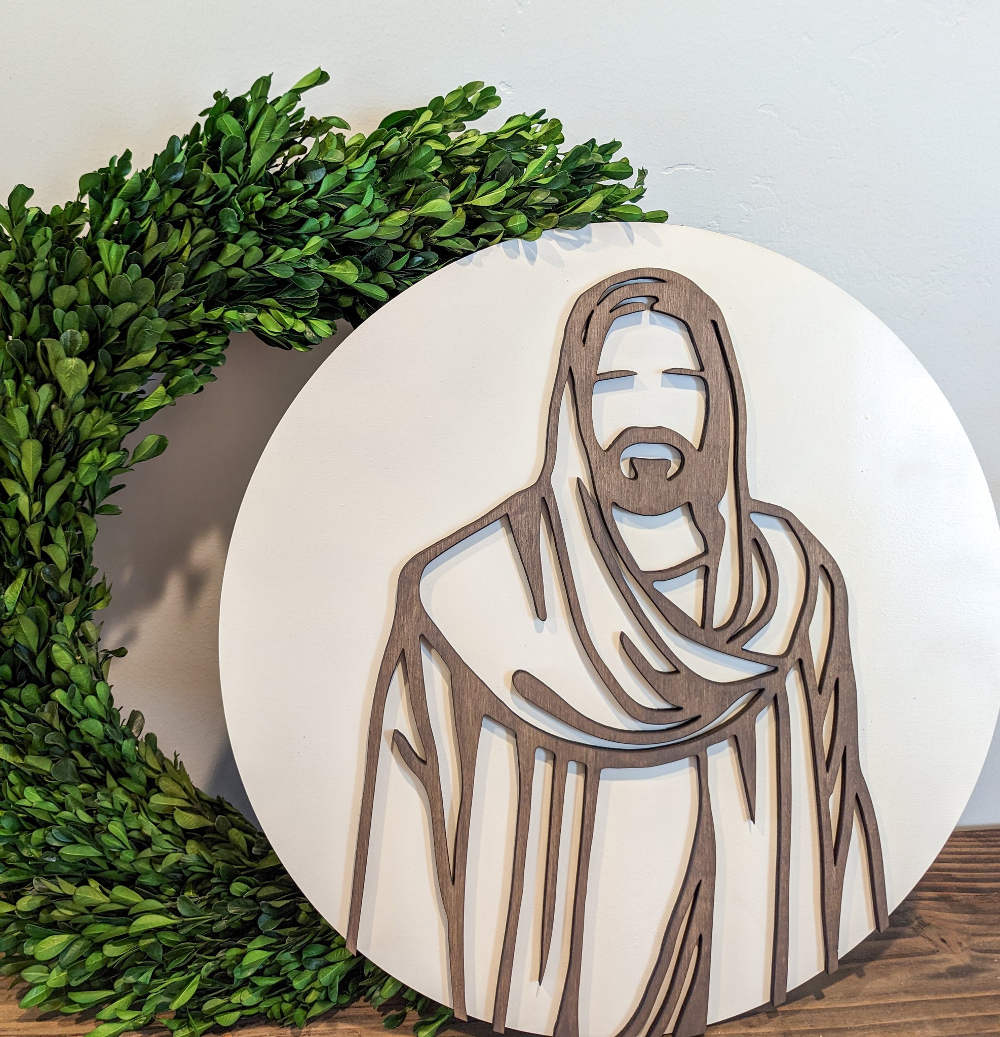 Welcome spring with this unique Christ Silhouette Circle Sign! Crafted from two layers of 1/4 inch thick maple wood, this beautiful sign is perfect for adding a touch of nature to any home décor. With its elegant silhouette, you can enjoy a peaceful reminder of faith in your living space.